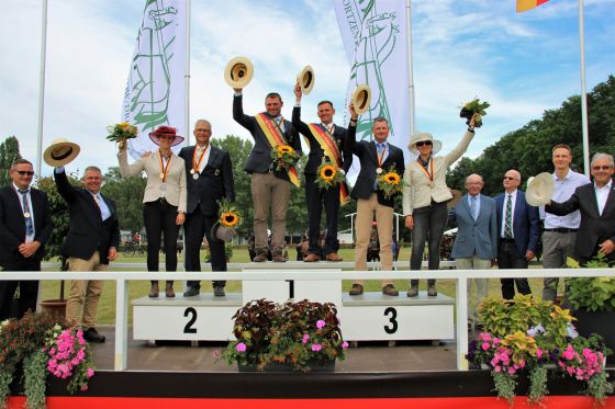 Drebkau - Viel Spannung und großartiger Sport bei den international besetzten Deutschen Fahrsport-Meisterschaften in Drebkau-Raakow, dem WM-Schauplatz von 2019. Sehr zur Freude der reichlich anwesenden Zuschauer gewann der 37-jährige Lokalmatador Sandro Koalick mit klarem Vorsprung die Zweispänner-Konkurrenz. Und das bereits zum vierten Mal in Serie nach zuvor Herchenrode (2018), Zeiskamp (2019) und Lähden (2020). Ein grandioser Erfolg, den bisher niemand zuvor geschafft hatte.